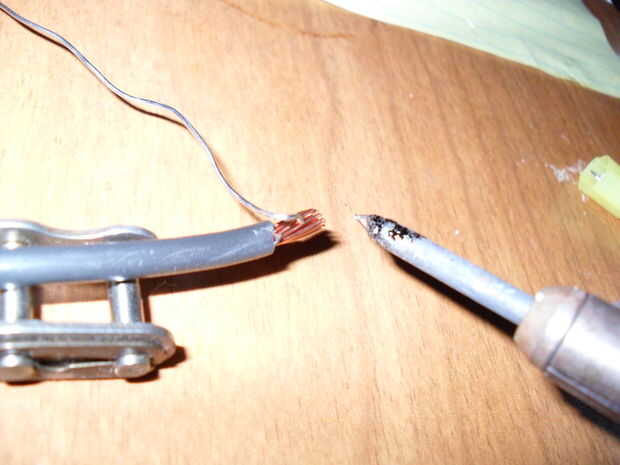 Ojales de aberturas adecuadas en ambos extremos del alambre de la encrespadura. Uno debe ser grande y uno debe ser un diámetro más pequeño.