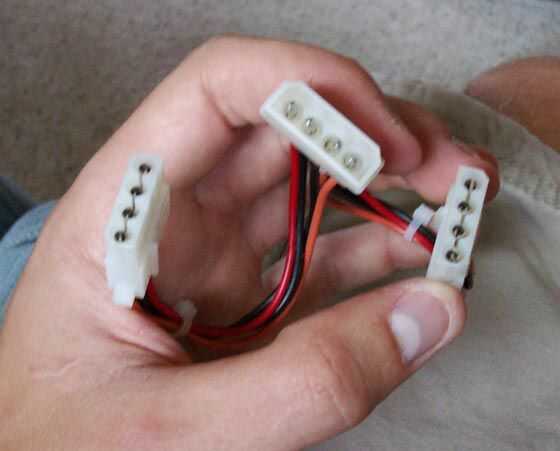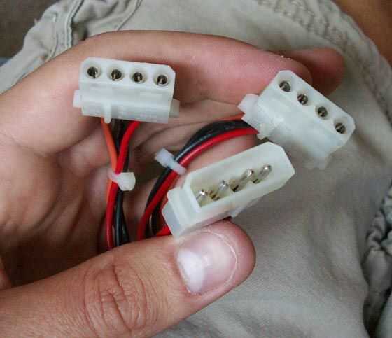 Utilizando piezas de una vieja fuente de alimentación y un ventilador, he construido un Y-divisor de Molex. He visto estas venta por menor para alrededor $4 (más Si coges un envío en cuenta). Las piezas que utilicé eran sobras - costo total de $0.00.