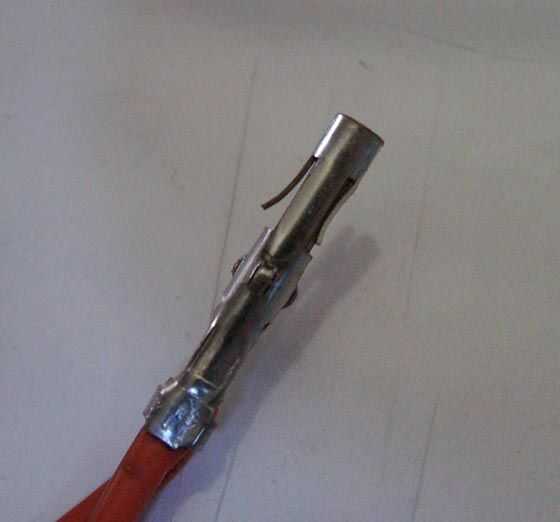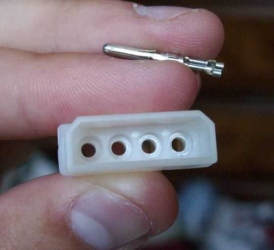 Tenemos que tomar los pernos de una de las clavijas macho y el conector hembra. Tome su pequeño flathead y presione las lengüetas del lado de la clavija (ver imagen). Hay dos por pin. Luego sólo sacar el pasador y seguir.