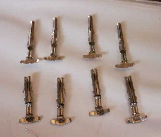 Ahora que tomar cabeza plana otra vez y las abrazaderas que sostiene los cables con el conector de apalancamiento. Una vez que se les baje, aplanar las pinzas y cortar los cables tan al ras como puedas. Quite cualquiera del escudo plástico que pueda quedar. Hacer esto para los ocho de los pernos.