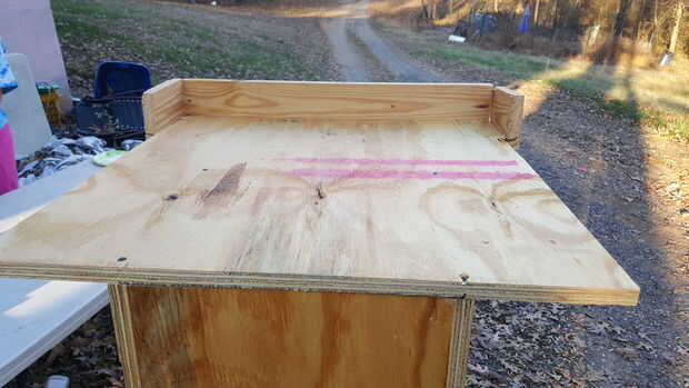 Establecer las tablas en un área de corte seguro y medir la longitud. Ahora podremos tomar nuestras hojas de madera contrachapada y cortarlas al tamaño que vamos a usar. primero tenemos que cortar las hojas por la mitad y a cuatro patas. Entonces tendremos que atornillar las tablas, hicimos tres tornillos, dos en el borde y uno en el centro... A continuación que tendremos que poner la base y la tapa en el cubo construido. Asegúrese de que sólo 6" hang-over en ambos lados de la parte superior, pero en la parte inferior debe tener todo 6" hang-over por los cuatro costados.
