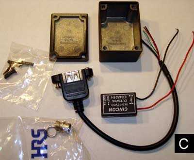Aquí está la colección completa de partes. CW de la tapa: caja, convertidor DC/DC, conector USB de cable flexible, conector de montaje en panel de 4 pines HIROSE, tornillos. Nee tendrás un par más de enganche los cables rojo y negro color (para emparejar de la polaridad) y 20-22 gauge.
