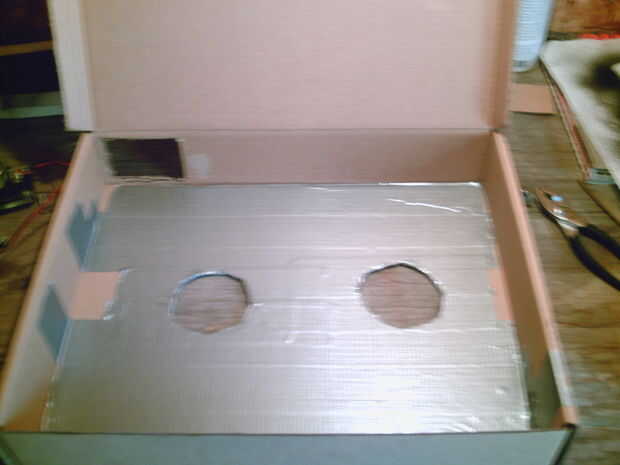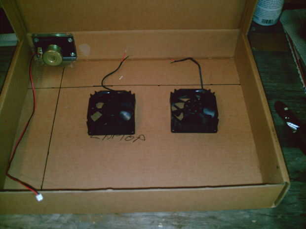2. Coloque los ventiladores en el centro de la caja (más o menos centro a donde tu laptop va a quedar espaciados uniformemente) traza el interior del ventilador para marcar dónde cortar Exaust orificios dejando un labio a sucre el ventilador demasiado.