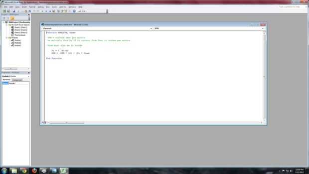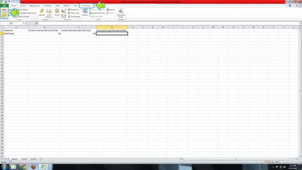 Que la primera línea es importante entender. "Función" le dice a Excel que su programa va a comportarse como una función. Entonces "RPM (SFM, Diam)" le dice el ordenador que cuando vayas a usar la función, vas a escribir esto en la celda: