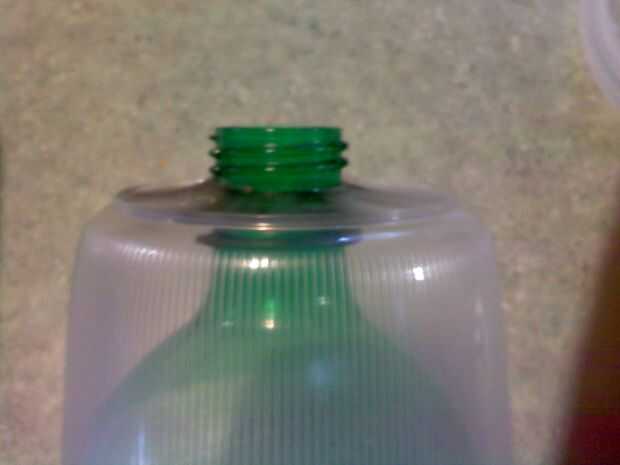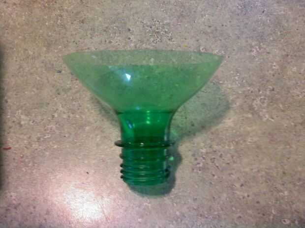 Corte el agujero en la Copa claro apenas lo suficientemente grande como para que la botella puede ser roscada a través de ella, (era el casquillo era) esto lo mantendrá en su lugar.
