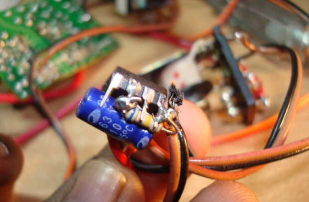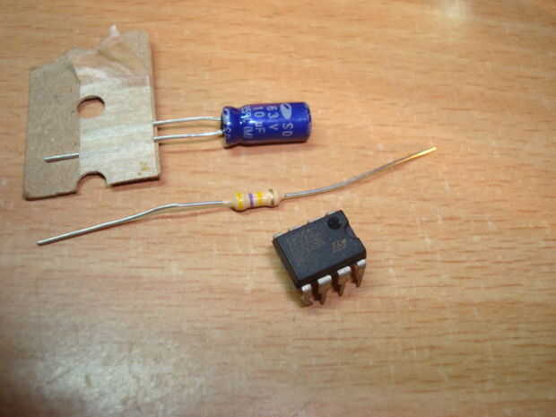 Soldadura el temporizador 555 con resistencia y un condensador según el circuito