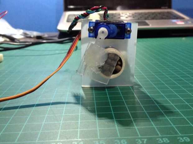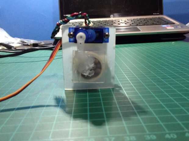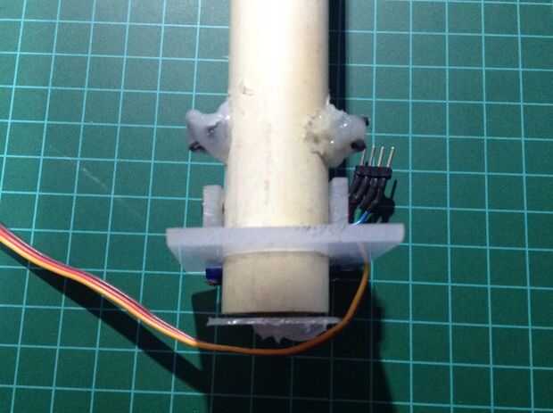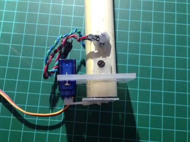 En mi caso lo único hice fue montar el servo con una compuerta de plástico al final del tubo de CPVC permiso de 3/4".