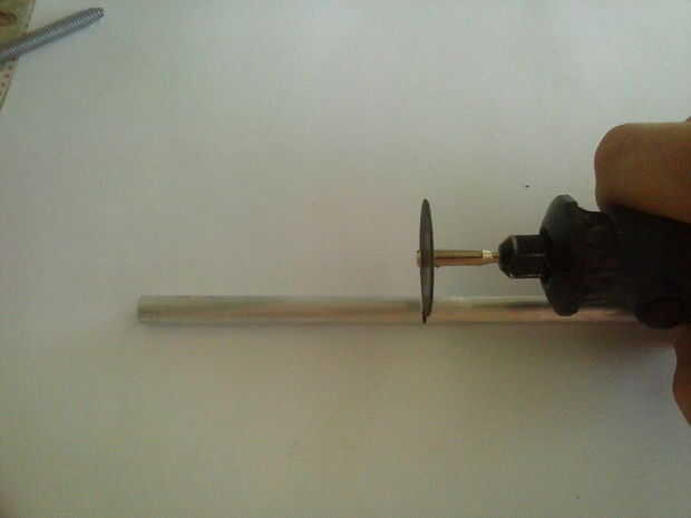 Marque y corte el tubo, el pin y el tamaño de la caja y herramienta adecuada si no tienes una dremel se puede utilizar la sierra manual.
