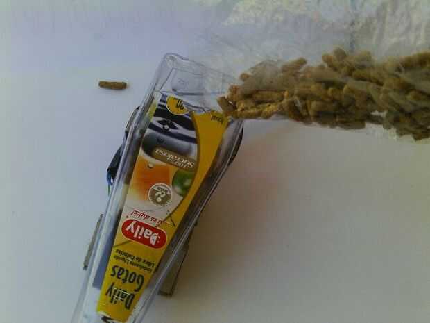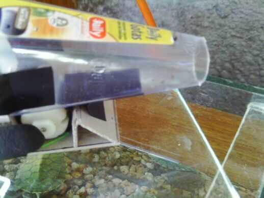 Se coloca el vibrador sobre la pescera, cargado con alimento