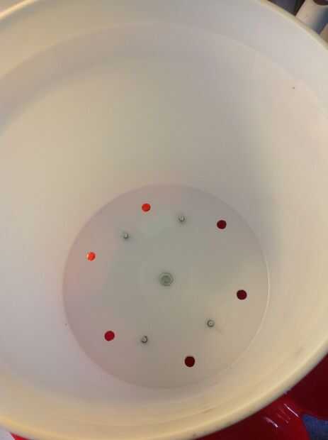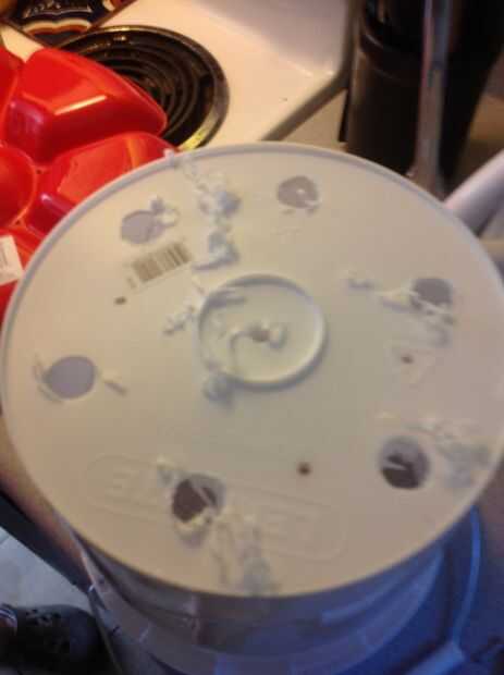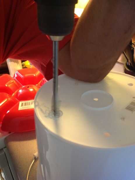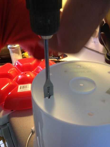 Todavía usando la broca más pequeña, taladre orificios guía en cada compartimiento en plato de chip. Esto hará más fácil cuando se utiliza la broca para madera para perforar los agujeros más grandes, necesarios para que la alimentación pase a través. Después de quitar el perno de centro principal y el plato, usar la broca para madera hacer la alimentación más grande los agujeros. Se utilizó un tamaño de pedacito de taladro de 3/4 alimentar crumble pero si están alimentando pellets o maíz entero, recomiendo ir hasta 1' o hasta tamaño de 2'.
