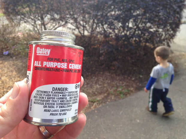 Cuando se usa cemento para PVC, siga las advertencias en la etiqueta. Unir las tres secciones fuera de las llamas. Una vez que el pegamento endurece, dar el alimentador de un buen enjuague con agua dentro y por fuera para eliminar el polvo.