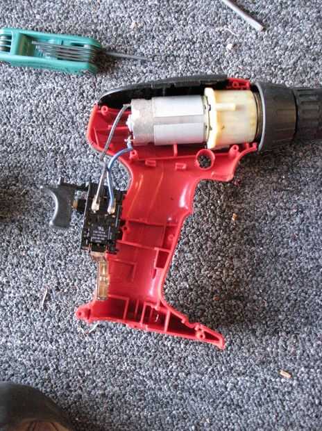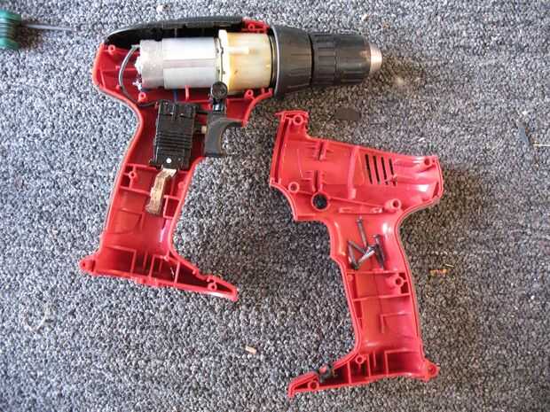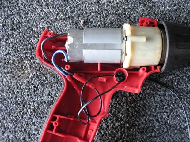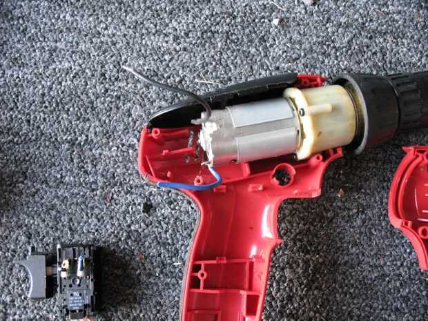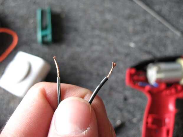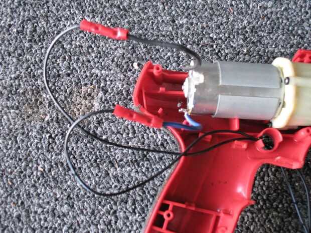 Abrir el taladro, picar el gatillo hacia fuera y los cables de la encrespadura el conduce la verruga de la pared sobre el motor - puntos de bonificación si Echale un vistazo y recordar qué lado es positivo.