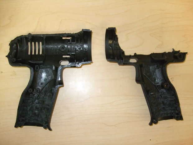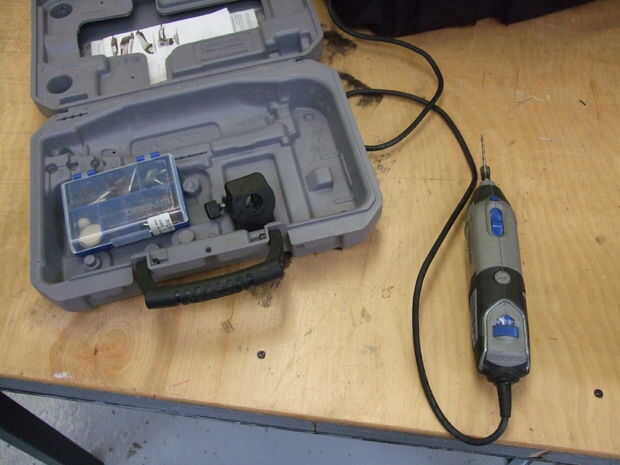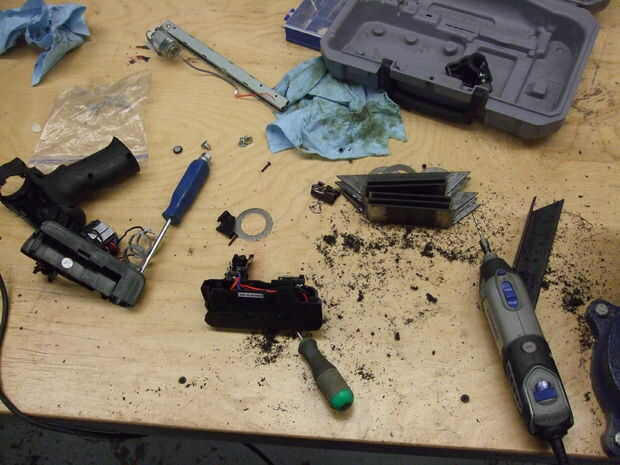 El conjunto impulsor es más grande que el cuerpo del taladro, por lo que tengo que hacer algo de espacio.  Y un lío.