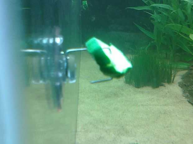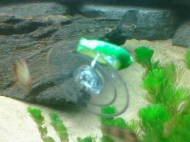 Fijar la ventosa al lado del acuario a nivel de lo que tu pez suele nada en.