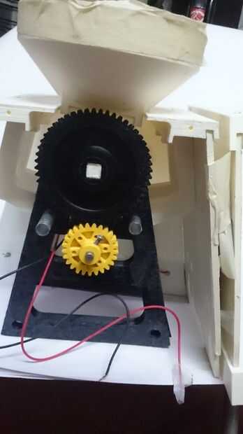 Este proyecto permite animales domésticos para alimentar a un ritmo constante que no te levanta más de un dedo. Hay una rampa en la caja que permite que los alimentos entrar en la rueda que es accionada por un servo que distribuye comida a su mascota