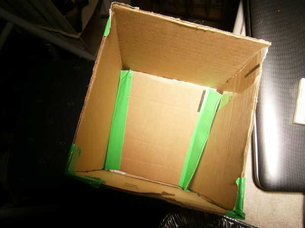 Marca donde están las alturas máximas y mínimas de la plataforma. Corte un agujero circular en el lado de la caja entre los dos niveles. Se trata de que se derrame el alimento de animal doméstico de. Coloque la plataforma a la altura máxima, cerrando completamente el conducto. Suavemente Vierta el alimento de animal doméstico hasta que llena la cámara superior del alimentador.