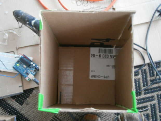 Este proyecto permite animales domésticos para alimentar a un ritmo constante que no te levanta más de un dedo. Hay una rampa en la caja que permite que los alimentos entrar en la rueda que es accionada por un servo que distribuye comida a su mascota