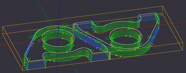 Al igual que en la impresión 3d hay 3 paquetes de software de base utilizados para crear una parte. Primero debe diseñar la pieza, escriba el código de G y luego enviarlo a la máquina de cnc. Como las piezas impresas 3d diseñe las cnc piezas en Solidworks y luego había exportado en formato DXF. Este es un formato ampliamente aceptado para el intercambio de dibujos en 2d. Este formato se utiliza a menudo para escribir código de G, usando un programa de CAM (CAM = ordenador asistido por fabricación). El software de CAM que solía escribir el código de G para estas piezas es CAMBAM cuando corte madera o cualquier material con un router cnc hay muchos entornos de software diferentes que van a crear el código G. Al igual que con todas las opciones disponibles en los programas de corte para la impresión 3d se dispone de ajustes igual que muchos, si no más, en los programas de CAM que se utilizan para escribir código de G para máquinas cnc. Básicamente es importar el fichero dxf, que es un dibujo 2d de la forma que desea cortar. Seleccione la forma, elegir el diámetro de la broca se va a usar y decidir cómo será cortada la parte. Con mecanizado cnc tienes que saber cuánto material puede sacar en un solo paso. En impresión 3d tu decides es lo grueso de cada capa y con cnc decida cómo profundo cortará la broca de fresadora en cada paso. Altura de la capa es impresión en 3d como pasar es al mecanizado cnc. Altura de la capa agrega material y paso resta material. Generalmente un paso con una máquina CNC tiene una profundidad de corte y una superposición de por ciento, que es lo ancho se comparará el corte a la anchura de la broca. Mecanizado CNC ha sido alrededor de mucho más tiempo que la impresión 3d y muchas normas se han escrito para decidir cómo cortar material. Esto es decisión se refiere a menudo como calcular velocidades y feeds. Programas de calculadora de velocidades y feeds están disponibles y una buena es G-Asistente de libro de CNC. Usted de entrada su poco tamaño y tipo, material, pase de profundidad y la potencia de tu router y el programa te dice la velocidad de giro el router y qué tan rápido debe moverse a través del material. Esta es la situación de corte ideal y a menudo puede ser ajustada para los mejores resultados. Si los ajustes son ahora fuera de los límites de su máquina, que usted puede fácilmente romper pedacitos o atascar los motores del router y paso a paso. Esto no es bueno y las máquinas cnc son mucho menos indulgente que impresoras 3d en este sentido. Una vez terminado el código G solía Mach3 controlan el router y enviar el código G. Este software es ampliamente utilizado por personas con máquinas cnc construida casa.