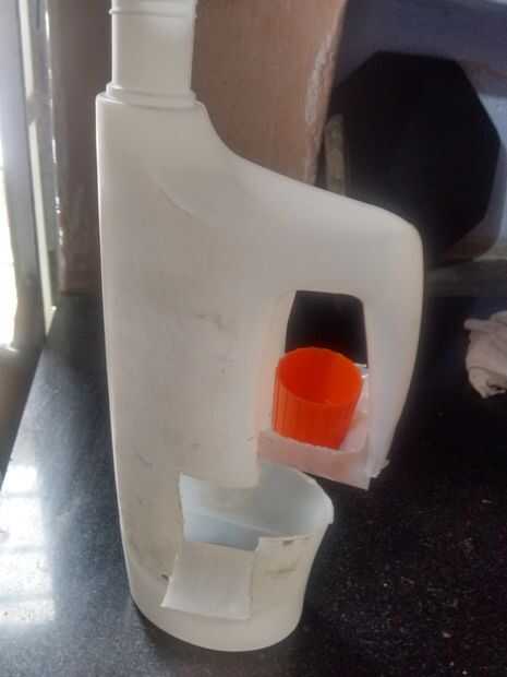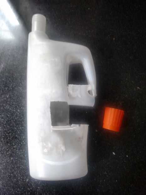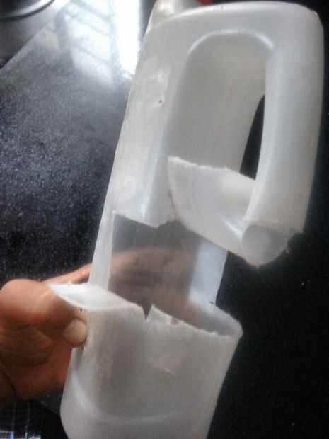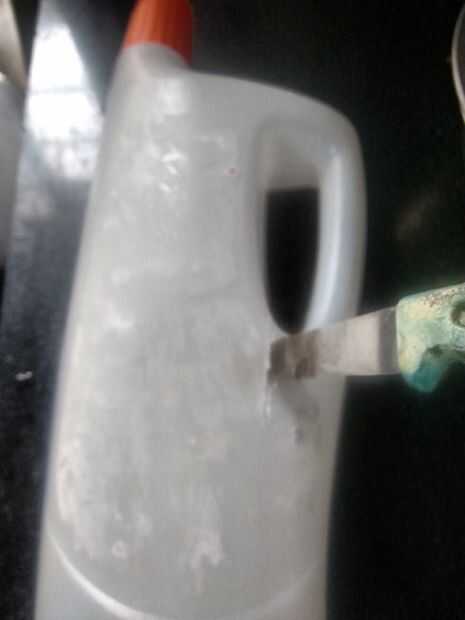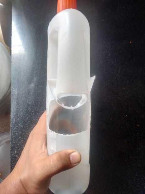 Nota: Por favor tenga cuidado al usar herramienta filosa para cortar el envase