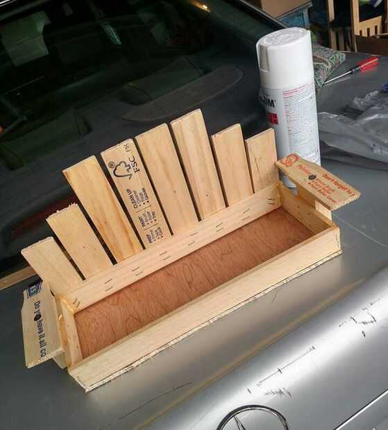 Este es uno de los pasos más importantes aquí. Coge algunos restos de madera, utiliza unos paneles de Luan y cortar 5" por 13" pieza. Puesto que esta pieza sostiene las semillas y las aves cuando la alimentación, usé pegamento de madera y la pistola de grapas para fijar a la estructura.
