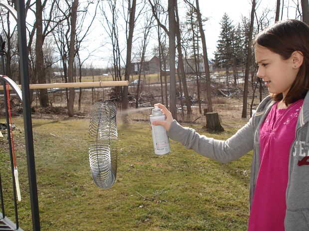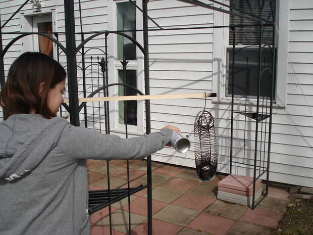 Su un comedero hecho de un furtivo y un trozo de alambre grueso o usted puede utilizar un colgador de ropa.