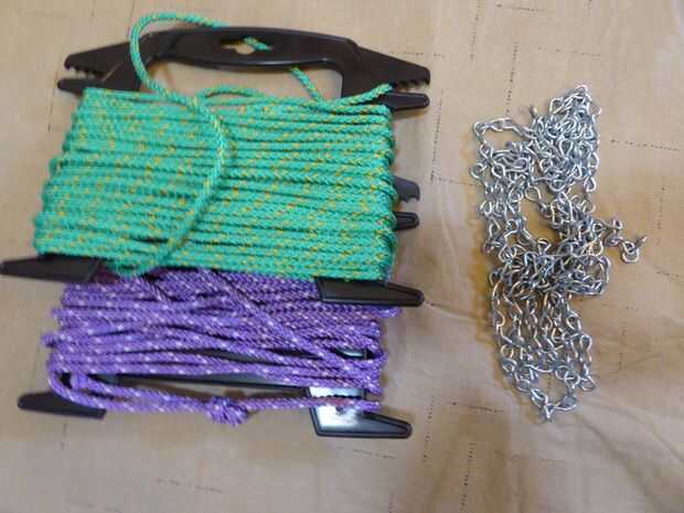 2. algo para colgar con: para-cuerda y cadena pesada cadena ligera, unos 8' de lo que usted elija.