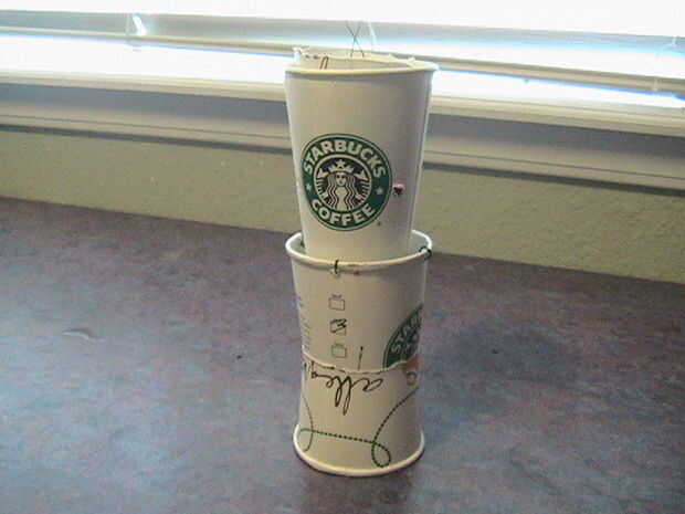 que quería construir un comedero y no quería una casa tradicional de madera en forma de uno. Así que tenía unos tiros de espresso y comenzó la lluvia de ideas... hmmm; Tenía quemado a cafetera que mis hijos se llevaron aparte para la escuela de papá