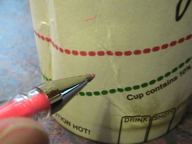 Ahora marca 4 diferentes lugares uniformemente colocado justo debajo del borde de la Copa y bueno, meter! (No a grandes el tamaño de tu alambre) Y 4 lugares diferentes que se colocan uniformemente sobre aproximadamente 5 cm por encima de la parte inferior de la marca