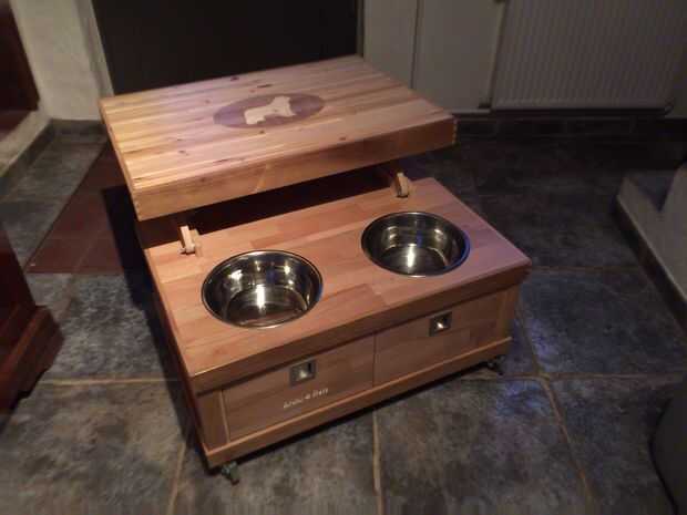 Hice esta tabla para un amigo que tiene un muy smallhouse y tres perros gigantes. ella tenía problemas para encontrar el lugar adecuado para darles de comer así que construí una mesa de centro del alimentador de perro de madera reciclada.