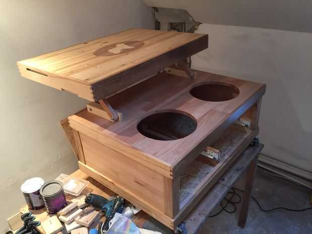 Una vez montado el cuerpo, hizo una mesa de café Levante, pegados y atornillados en su lugar. Luego hice los cajones de madera contrachapada de 6 mm y melamina