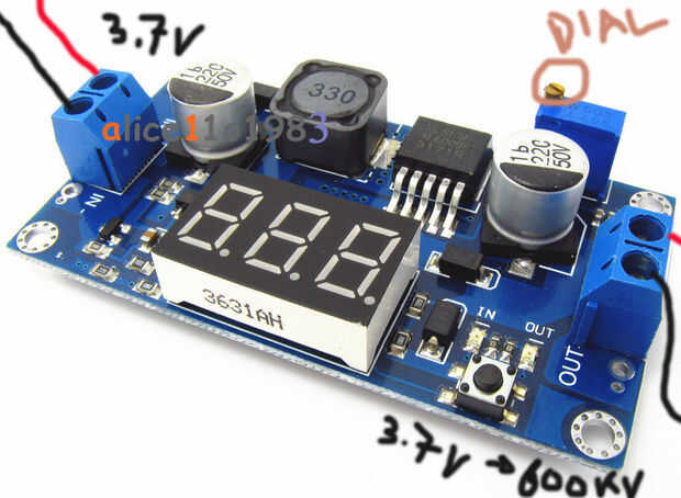 Usted encontrará muchos libros complicados, sitios, diagramas y instructables tratando de explicarte cómo aumentar la tensión. La física detrás de intensificación de tensiones está bastante avanzada. Algunas guías le animarán a bobinas de cobre del viento sí mismo y construir grandes artilugios. No ponga usted mismo a través de esto! Este es el 2016! Desde 2015 pequeños circuitos baratos llamado "paso ups" se han convertido en ampliamente disponible de China en cantidades de 1. Un paso adelante es un circuito que toma el voltaje de entrada y multiplica por un factor opta por marcar un botón (llamado un potenciómetro y visto en la parte superior derecha de la foto anterior). ¿En serio que simple? Yup! ¿No puede ser? ¡ Es!