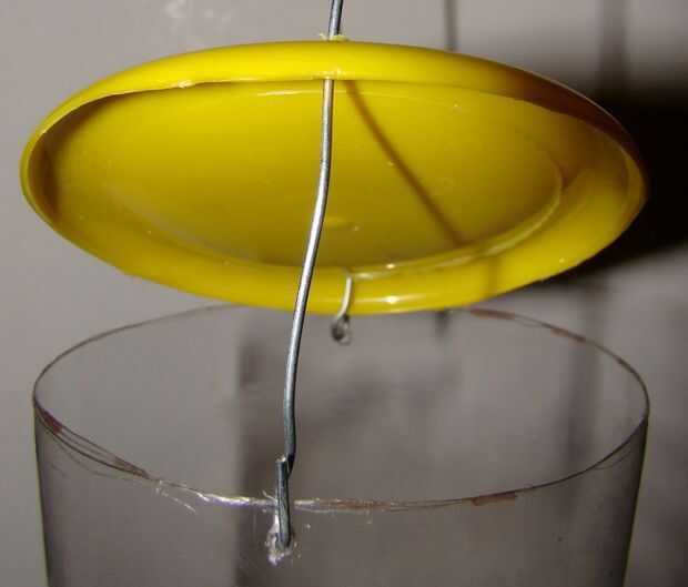 Puntuación y corte el vaso de plástico que será la tapa del alimentador.  Dos agujeros frente a la unos a otros en la tapa, coloque en la botella y perfora dos agujeros en la botella justo por debajo de los agujeros de la tapa.  Pase el cable a través de agujeros.