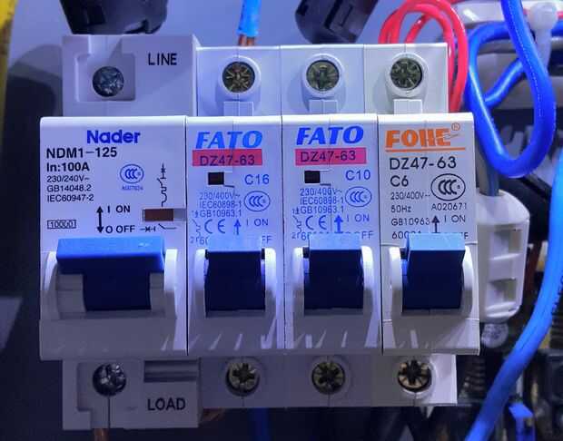 Los interruptores que utiliza son de tipo de montados en riel DIN. Estas son de muy bajo costes de Amazon. Todos los interruptores de mi DC están unipolar. La negativa del sistema de alimentación de CC está ligada a un punto de conexión compartida. Sólo lo positivo está protegido con los interruptores.