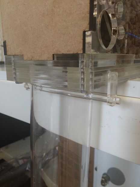 1) medir la distancia desde el piso hasta la parte inferior de su mecanismo, menos unos 150 mm para el tazón de fuente del perro y luego cortar el tubo de acrílico esta.