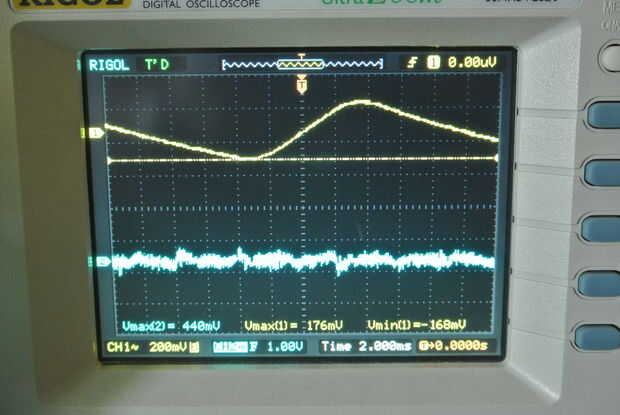 Modo de conmutación (nuevos adaptadores, fuentes de la computadora, abren marco etc.) tendrá generalmente una frecuencia en el rango de 5-150kHz, que a menudo cambia si la fuente de alimentación es bajo carga.