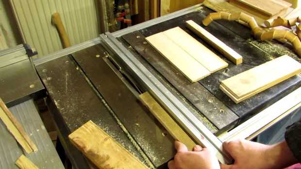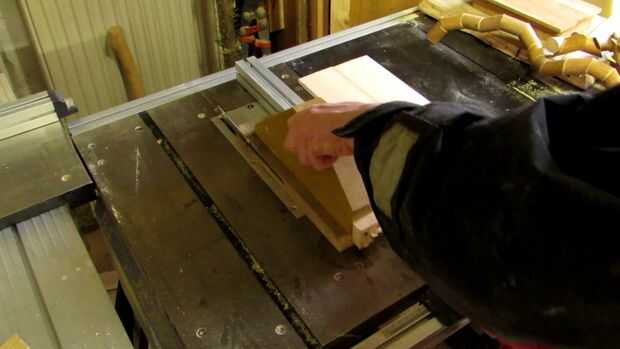 Establece su sierra de mesa en su ángulo favorito personal y la valla para que corte ese ángulo del lado de uno de sus trozos de paleta - como se ve en la primera foto. Ejecutarlo a través de, y luego mover la valla sobre el espesor de pared que desea utilizar. Esto es, una vez más, una elección arbitraria. Recomiendo algo entre 1 cm y 1/2 ".