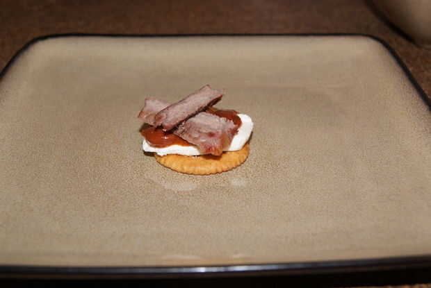 Añadir el filete a la parte superior de la galleta.
