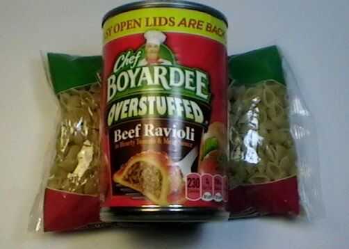 Mullido ravioles (un favorito personal) cuestan significativamente menos que la lata de sopa Progresso (aproximadamente la mitad del costo) y tiene más calorías, aquí están las estadísticas: