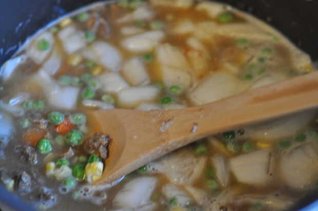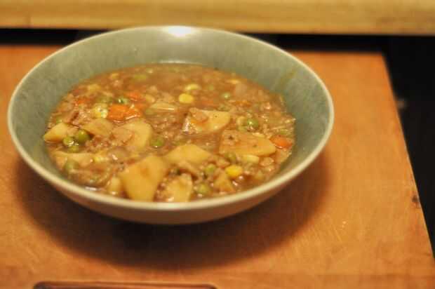 2. Agregue los ingredientes restantes y cocinar a fuego medio hasta que el guiso haya espesado y las verduras estén tiernas, unos 20-30 minutos.