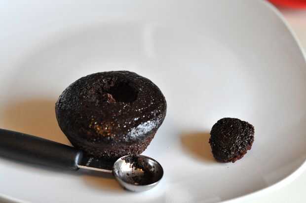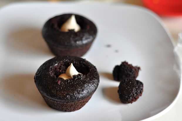 3. tubo de la crema en las partes ahuecadas de los cupcakes, dejando un poco de espacio para pegar las tapas.