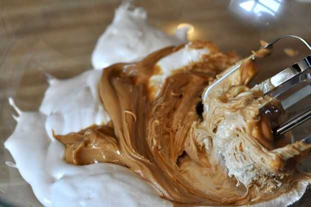 2. para el relleno, batir la mantequilla, mantequilla de la tuerca y malvavisco crema juntos hasta que esponje. Transferir a una pastelería o una bolsa de plástico.