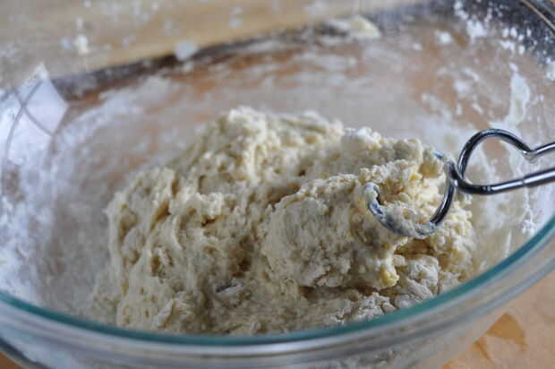 Agregue lentamente en las restantes dos tazas de harina, permitiendo que la masa se reúnan del gancho de masa (o realmente desgastarse los brazos!).