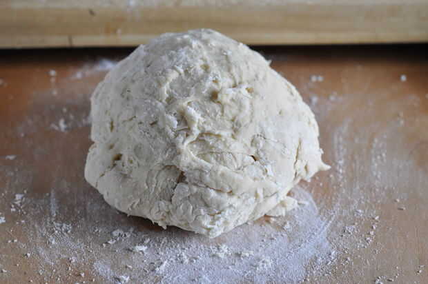 Cubra el tazón con un paño humedecido y dejar para subir en un lugar cálido hasta que la masa ha duplicado su tamaño.