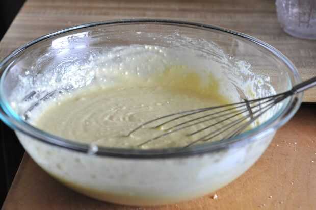 3. lentamente agregue huevo de cada pollo y batir bien. Añadir la leche o crema.