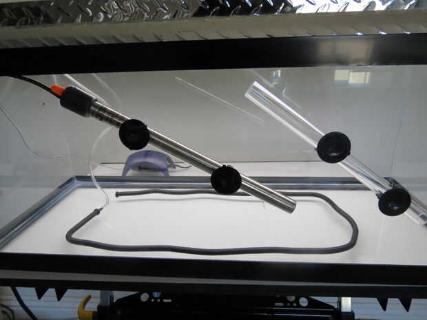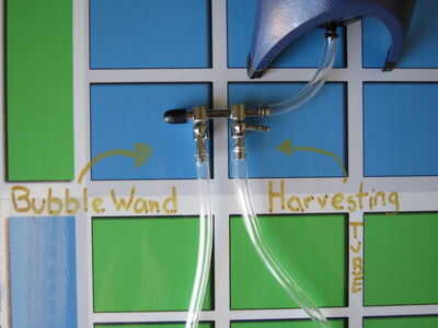 Empezar por arreglar la varita de la burbuja alrededor de la pared del tanque. Esto airear la espirulina y CO2 de la alimentación en la cultura. A continuación, succión taza el calentador a la pared del tanque. Fijar el calentador a 88 grados debido a la temperatura óptima de crecimiento de la espirulina es 92 grados F. El tubo transparente de cosechando también es succionado al cristal del tanque. Ahora, ejecute la línea de aire a los bivalvos: entonces la varita de la burbuja y la parte inferior del tubo de grado de alimentos. La válvula de Bi le permite cambiar de aireación a la cosecha con el mínimo esfuerzo.