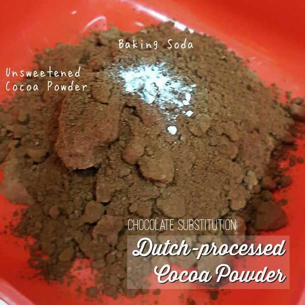 1 onza de polvo de cacao holandés procesado = 3 cucharadas sin azúcar cacao en polvo + una pizca (1/8 cucharadita) de bicarbonato de sodio.