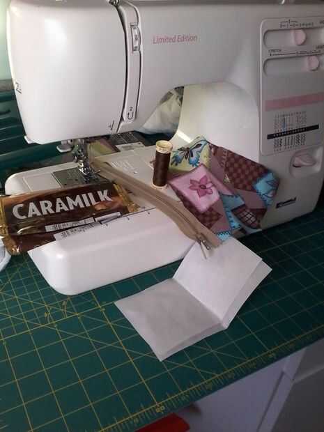 Dos contenedores de barra de caramelo y chocolate, dos piezas de sewable hierro en vinilo, una cremallera de 7 o 9 pulgadas (tiempo suficiente para que la parte superior de la envoltura), dos piezas delgadas de tela para el forro (mismo tamaño que las envolturas), hilo, una máquina de coser (con pie regular y cremallera) y una plancha.