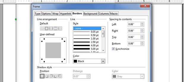 Ir a la pestaña de fronteras en el cuadro de diálogo de Marcos. Seleccione Ninguno para el ancho del borde. El espacio a las categorías de contenido debe mostrar todos los valores de 0.0 pulgadas. (Los valores mostrará 0.0 pulgadas después de hacer clic en Aceptar. Si el cuadro de diálogo debe ser abierto otra vez, tire hacia abajo de insertar y haga clic en marco como antes.) Mientras todavía se destacan los puntos de agarre, mantenga pulsada la tecla CTRL y pulse C para copiar el marco.