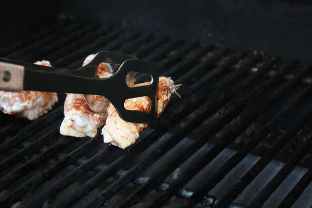 Después de su especia ha cubierto todas las alas calentar la parrilla hasta alta y añadir las alas con un poco de espacio separando cada uno de ellos entre sí. Cierre la parrilla y cocine durante cinco minutos por cada lado o hasta que las alas se desprenderá fácilmente.
