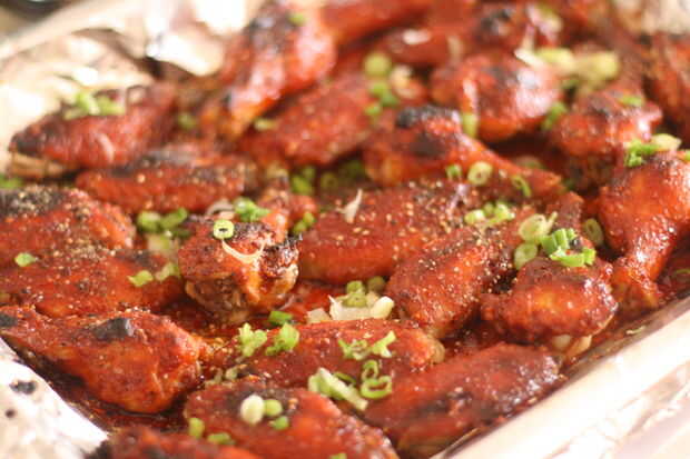Alitas de pollo BBQ son siempre un ganador cuando y donde se sirven. Son una gran manera de condimentar encima de una barbacoa de verano. Estas alas marinadas con la salsa dulce y picante barbacoa casera inspirado asiático están genial para la parril